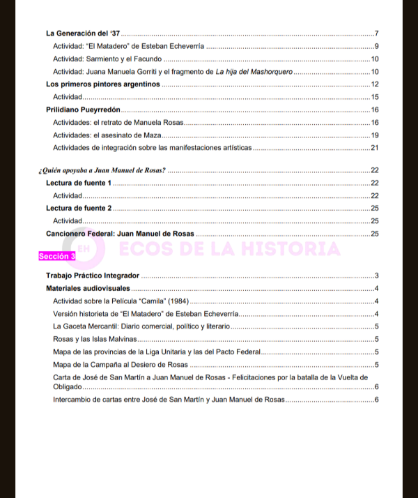 Este material resulta especialmente útil para clases de Historia y Literatura, proyectos interdisciplinarios, o para quienes deseen acercarse de manera crítica al siglo XIX argentino. Combina textos, imágenes y dinámicas participativas que enriquecen el aprendizaje y favorecen una mirada integral sobre la época de Rosas.