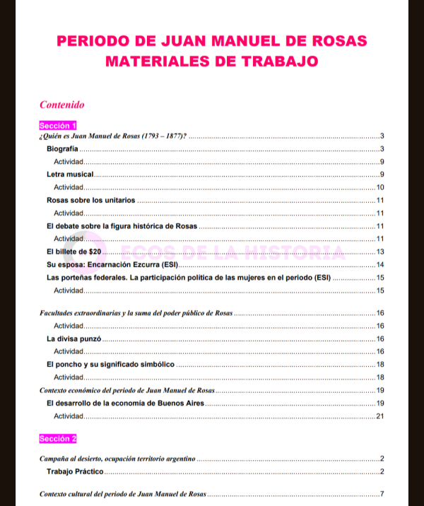 Materiales de trabajo: El periodo de Juan Manuel de Rosas: un recurso completo para docentes y estudiantes que buscan comprender y analizar el período rosista en la historia argentina.
